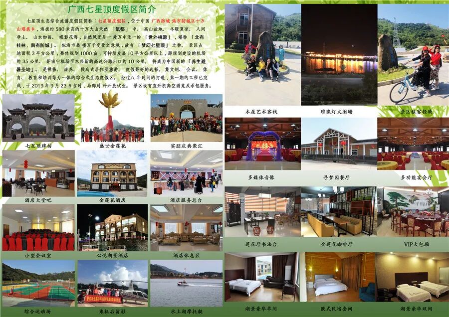 七星顶度假区由澳、港、台侨界会员组织成立的防城港华澳国际商贸有限公司投资建设,是集文创、会议、体育、教育培训等为一体的综合式生态度假区,宁静悠然的环境亦是禅修、康养、候鸟式居住及旅游、度假的优选圣地。