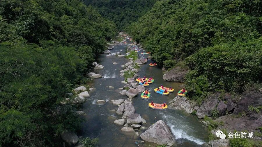 野人谷自然风景区青山环绕,山上为原始森林次生状态,是广西防城港市野人谷旅游开发有限公司近年来重点开发的旅游景点。距东兴市往那良镇沿边公路仅22公里,交通便捷。防城港市野人谷漂流选用两人一条的橡皮艇,漂流全程需要两个半小时。山高林密、峰奇石秀、峡谷纵横、溪潭珠联、曲径通幽、景色宜人。