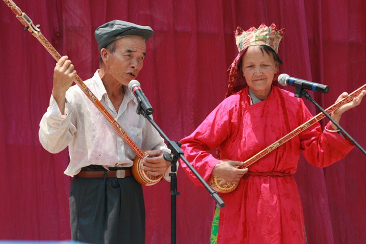 天婆表演弹天琴