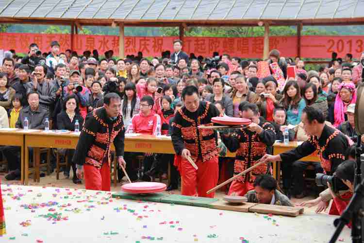 在峒中一带村屯无论汉族人还是壮族人都爱组织打砧板陀螺;这些村屯的男性群众无论是小孩还是老人都会打砧板陀螺。每年春节,这些村屯都要组织村与村或屯与屯或中越砧板陀螺赛;赛程一般在初一至初四,甚至到初七。汉族人(白话)把打砧板陀螺叫“打棋乐”,壮族人叫“独生”。其陀螺赛玩法是:双反各派出一名选手,齐拉陀螺着地,看谁的旋转时间长为胜方,也叫“钉方”,而输方也叫“落方”。“落方”将陀螺落地拉旋,由“钉方”任意钉打、劈、砍,而这些过程只能是通过陀螺本身去完成,且只能为一次过。经过激战,如果“落方”留在地上的陀螺比“钉方”留在地上的陀螺旋转的时间长,则反败为胜。其比赛的技巧是:“落方”看谁拉得够旋而不让“钉方”弄到,并要反超“钉方”。“钉方”则看谁能把“落方”陀螺打得远,钉得飞,劈得准,砍得死而不让“落方”有翻身之时。比赛时间由双方预定,可长可短。时间一到,看谁做“钉子”的次数多为最后胜出。若做“钉子”的次数双方相等,则通过双方各派一名选手,齐拉旋转陀螺着地(同开赛时一样),以一坨定音,谁旋的时间长,谁就是最后获胜者。