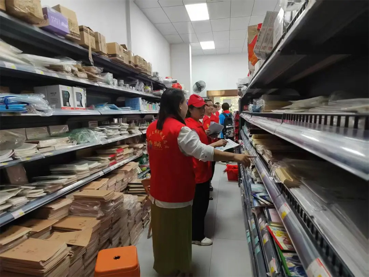 Picturehình nhân viên kiểm tra các hiệu sách, cửa hàng văn phòng phẩm xung quanh trường học.▲工作人员对学校周边书店、文具店进行检查。
