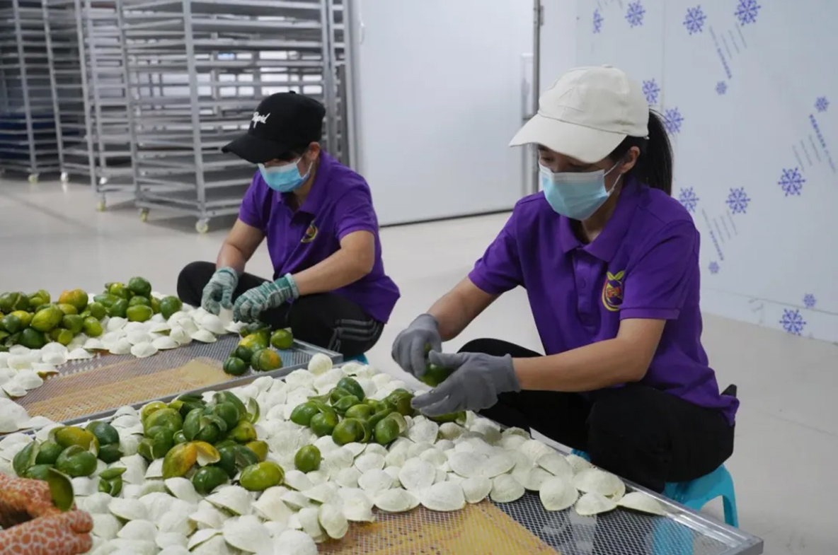 进入11月,防城区那良镇迎来了陈皮丰收季。走进防城区那良镇那楼村的大红柑种植基地,清新的陈皮柑香气扑鼻而来。村民们忙碌的身影穿梭于果树之间,他们手持剪刀,将一颗颗饱满的大红柑采摘下来,采摘好的大红柑被一筐筐装车送回加工厂进行加工。